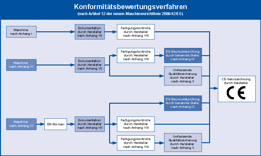 Es ergeben sich für die Konformitätsbewertung von Maschinen diverse Möglichkeiten. So kann z. B. bei Maschinen, nach Anhang IV der Maschinenrichtlinie, das bisher obligatorische Einschalten einer benannten Stelle entfallen, wenn die Maschine nach harmonisierten Normen hergestellt ist.